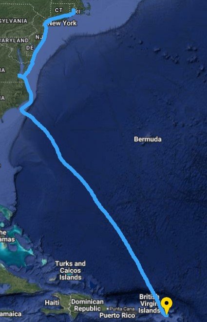 After many anxious moments waiting for a weather window to head directly to Sint Maarten via Bermuda, we finally left Wickford to head down Long Island Sound, through New York City then down the coast to Hampton VA before heading out around Cape Hatteras to Sint Maarten.